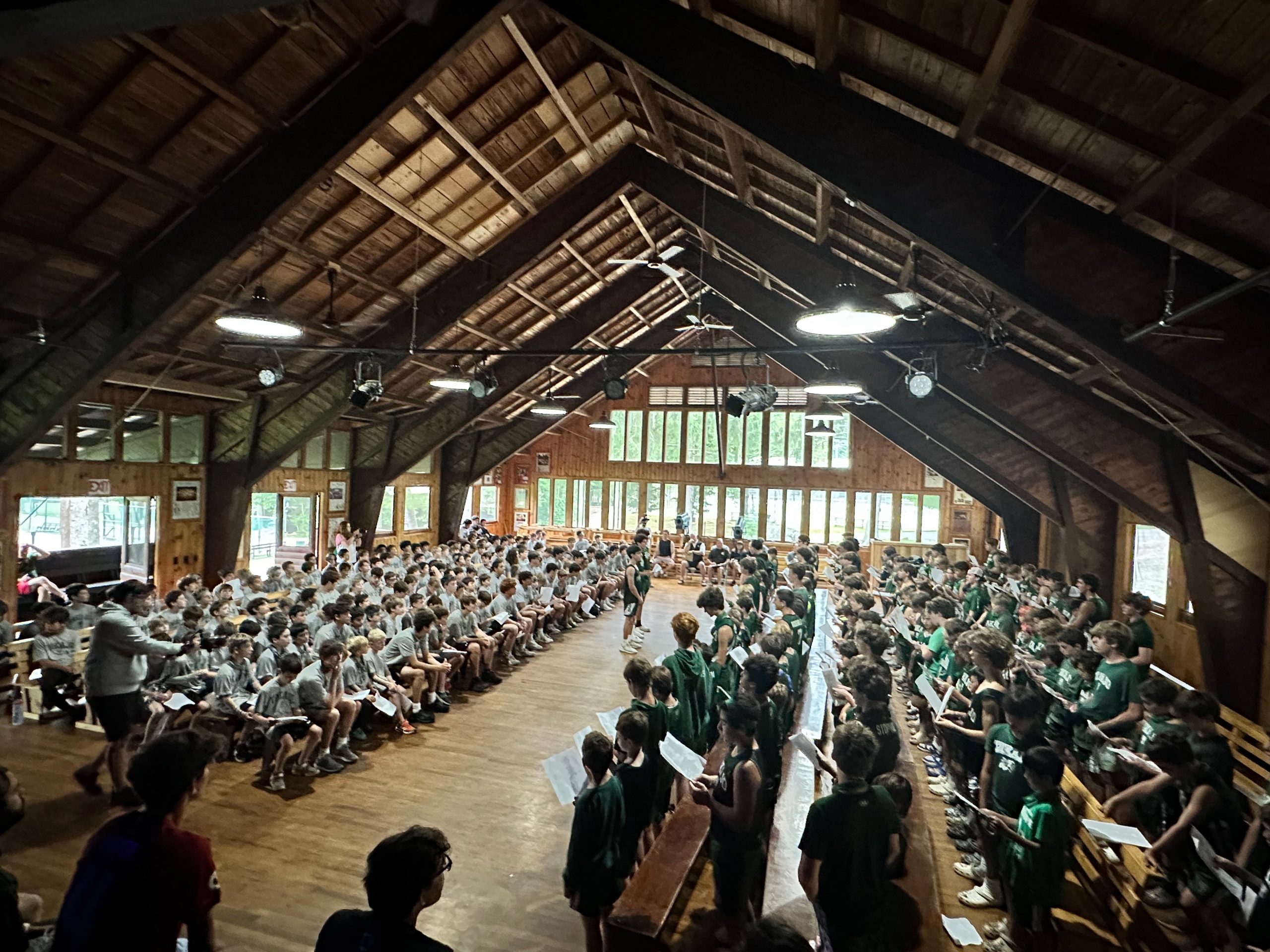The spirit and emotion were at a fever pitch today as we started the morning with Song Competition in which boys across all age groups join with their Olympic brothers and sing the camp songs. Among them are the camp Alma Mater and an original song written by the Okees. In a close contest, the Grey Team edged the Green, but the highlight was the sight of all our boys, shoulder to shoulder, singing together as one, in a touching display of camp spirit that is as emotional an experience as any we have at camp.